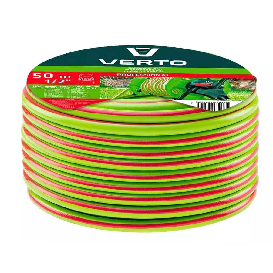 Шланг садовый VERTO Professional 1/2" 15G822 - Шланг выполнен из прочного и износостойкого материала, который обеспечивает долговечность и устойчивость к воздействию солнца, мороза и воды. Он также устойчив к изломам и перекручиванию, что делает его удобным и легким в использовании.