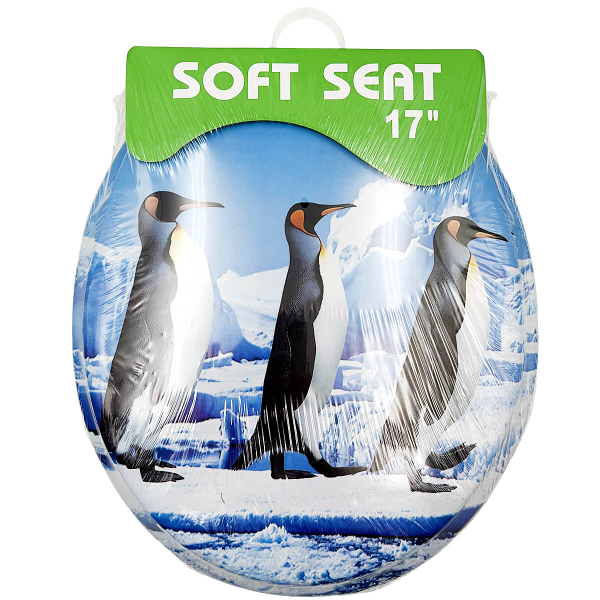 Мягкое сиденье для унитаза с оригинальным рисунком пингвинов станет стильным дополнением вашей ванной комнаты. Выполнено из пластика с мягким покрытием для комфортного использования. Легко устанавливается и очищается, обеспечивая гигиену и удобство. Подходит для стандартных унитазов.