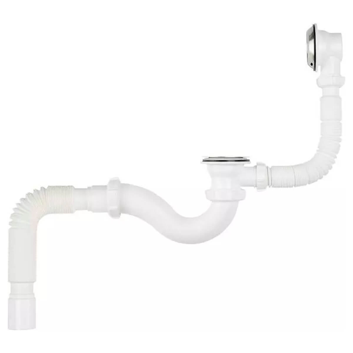 Сифон для ванны Aquant PV150-30-MR с клик-клак, автоматическим переливом и металлическим грибком 1 1/2х40 мм, 40х40/50 мм