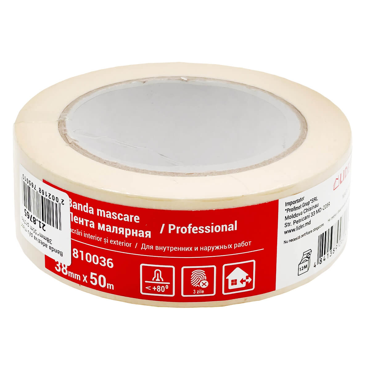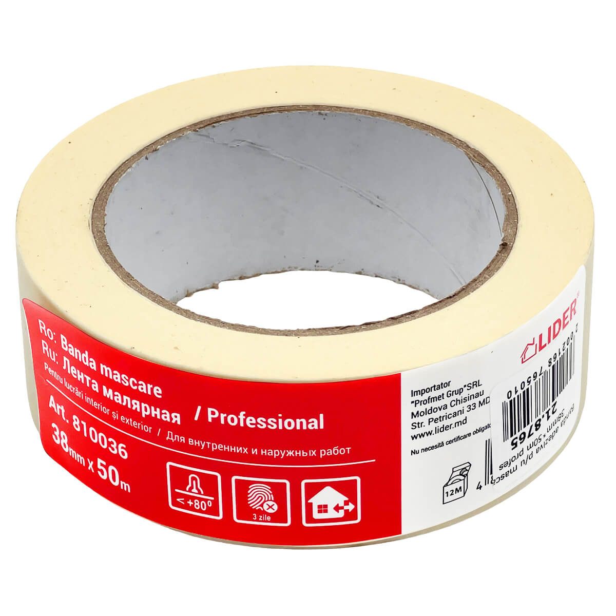 Лента малярная для внутренних и наружных работ Lider 38 мм х 50 м желтая (Арт. 810036) - предназначена для защиты поверхностей при внутренних и наружных работах. Обеспечивает четкие границы при окрашивании, устойчива к высокой температуре, легко удаляется, не оставляя следов до 7 дней.