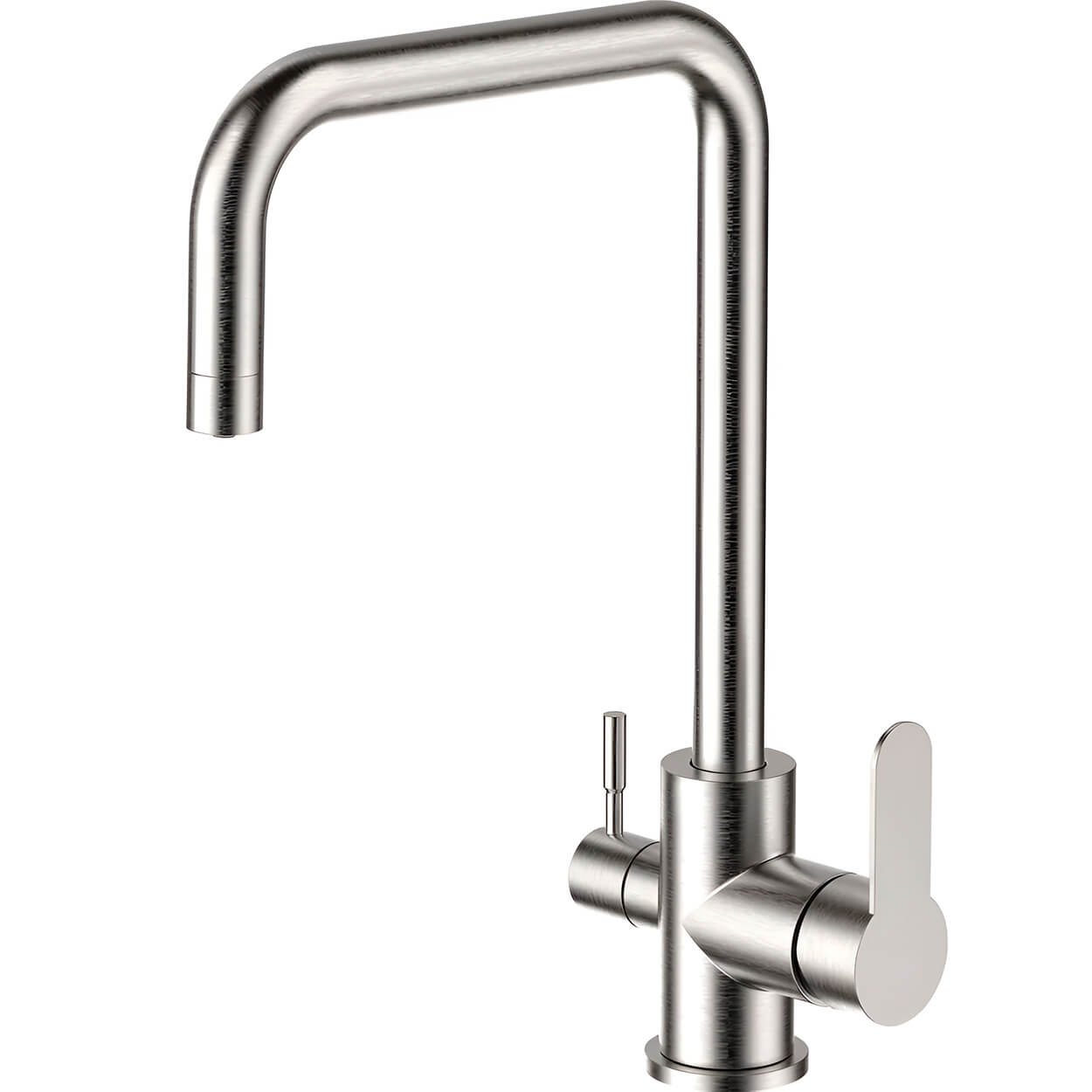 Смеситель для кухни Frap F 43801 двухрычажный, нержавеющая сталь, под фильтр 2 в 1