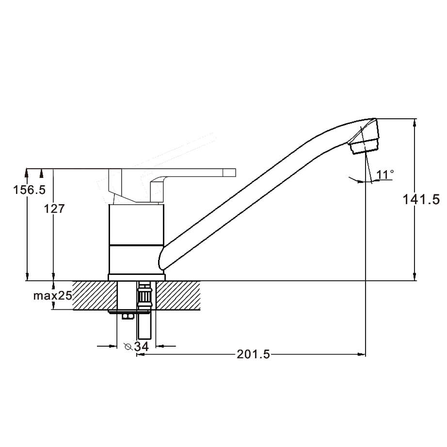 Аэратор, установленный на изливе, смягчает воду и помогает экономить её расход, что делает использование смесителя еще более комфортным и экономичным. Хромированное покрытие придает смесителю современный и элегантный вид, который отлично впишется в любой кухонный интерьер.