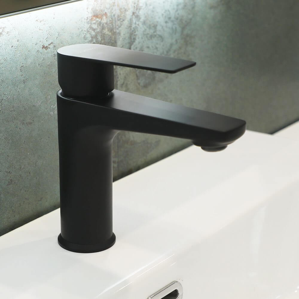 Смеситель для раковины Mat|eco Aleo черный мат однорычажный предназначен для подачи и смешивания горячей и холодной воды в умывальнике. Однорычажное управление позволяет быстро настроить напор и температуру одной рукой.