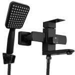 Смеситель для ванны Mat|eco Inox Cubo с душевым гарнитуром, матовый черный