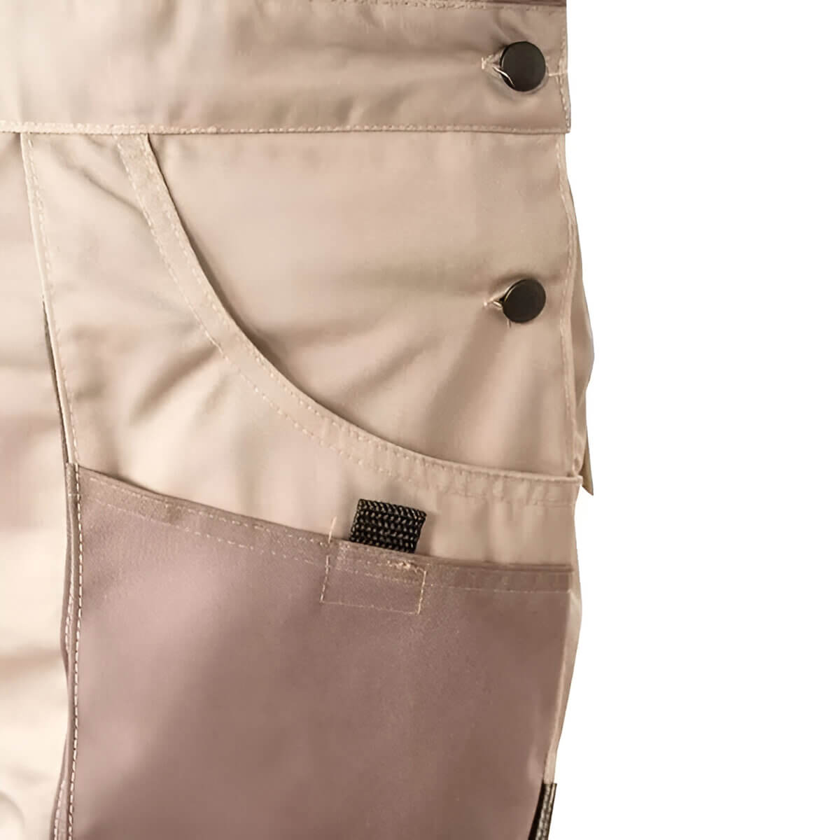 Стильный дизайн: Двухцветный бежевый/хаки дизайн придает полукомбинезону современный и профессиональный вид, который легко сочетается с другой рабочей одеждой, подчеркивая аккуратность и ухоженность внешнего вида.