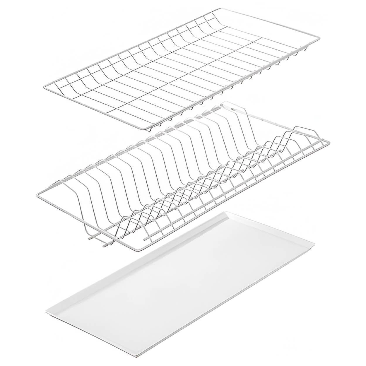 Универсальная и просторная сушилка для посуды из прочного металла белого цвета. Широкие перекладины позволяют быстро размещать и высушивать тарелки, кастрюли и крышки. Благодаря компактным размерам 90 см легко разместится в шкафу, освободив дополнительное пространство.