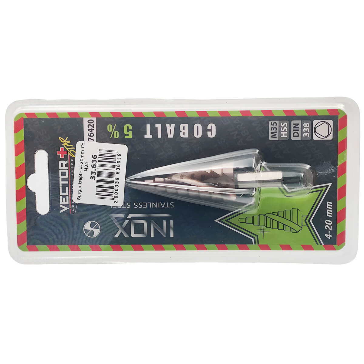 Сверло ступенчатое спиральное кобальт по металлу VECTOR+ 4-20 мм, HSS M35 (Арт. 76420) - Спиральное, прочное, для точного бурения. Идеально для металла, устойчиво к высоким температурам.