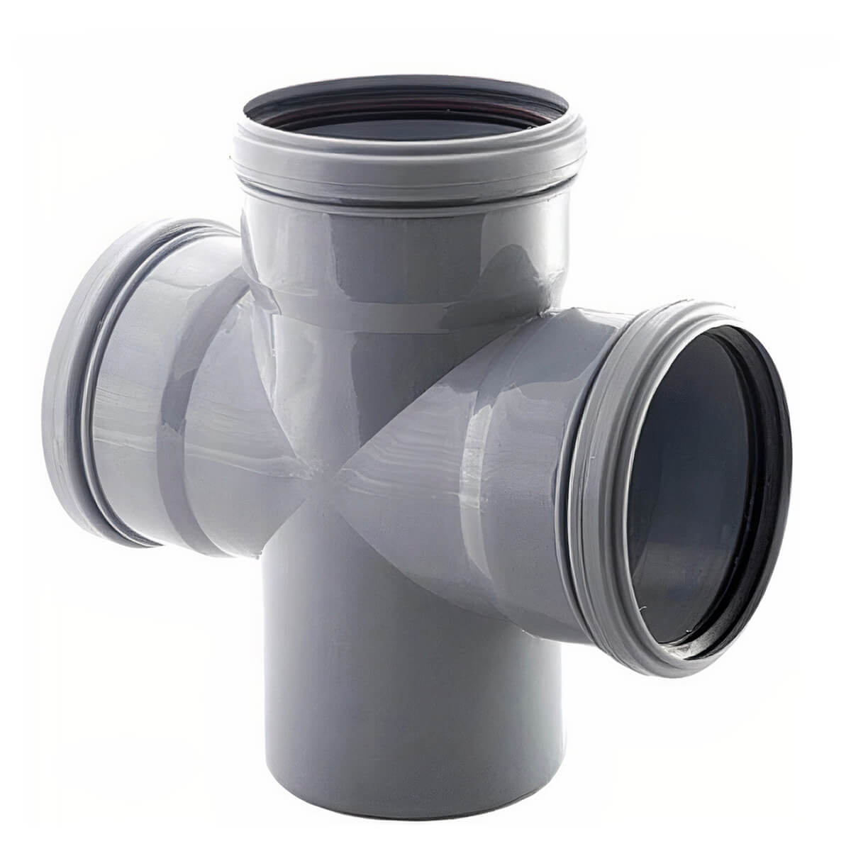 Крестовина MPN d50х50х50 мм 90° пластиковая для внутренней канализации (5106) - Данное изделие применяется для разветвления потока воды на три направления.