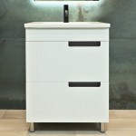 Особенностью модели являются два вместительных выдвижных ящика, которые позволяют удобно организовать хранение бытовой химии, полотенец и аксессуаров. Выемки-ручки органично вписаны в фасад и обеспечивают лёгкий доступ к содержимому ящиков.