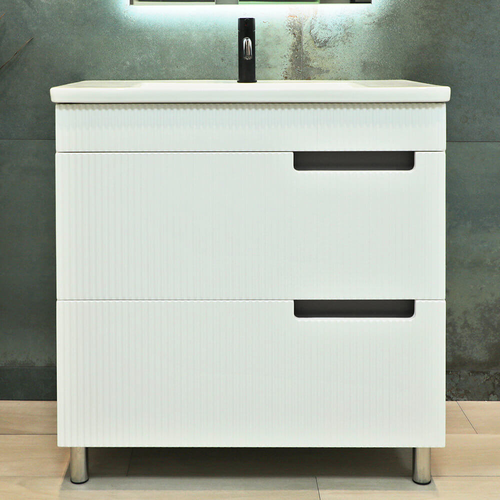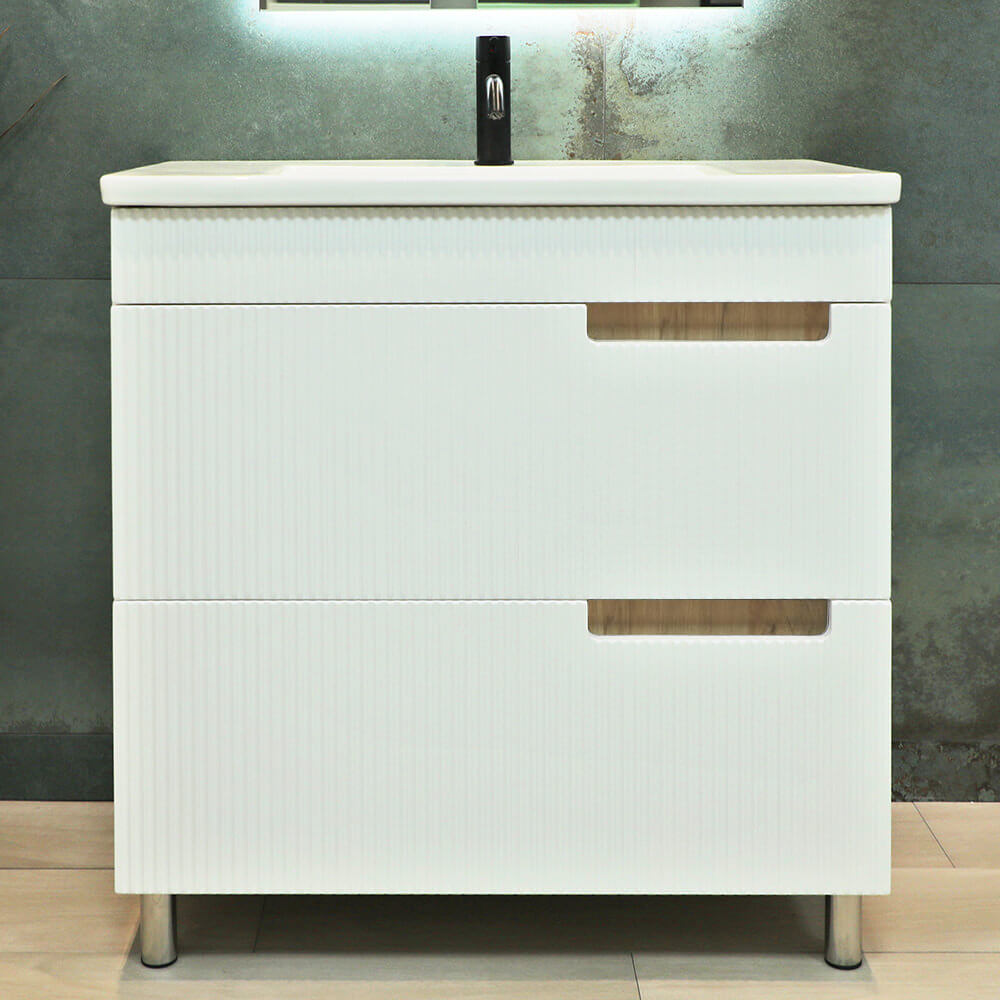 Тумба под раковину BAYRO Positano — современное решение для функционального обустройства ванной комнаты. Напольная конструкция и универсальный белый матовый цвет делают её подходящей как для компактных, так и для просторных интерьеров.