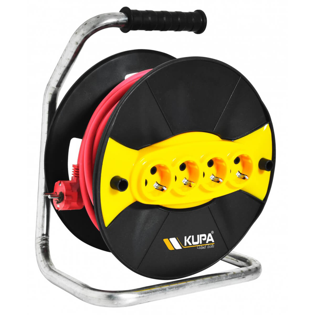 Удлинитель силовой KUPA на катушке с заземлением 16 А, 30 м, 230 В, 4 розетки, 3х2,5 мм (KUP8035) - Цвет: черный/желтый. Сечение провода: 3х2,5 мм. Прочный материал обеспечивает безопасность и долговечность. Идеально подходит для подключения электрооборудования на расстоянии.