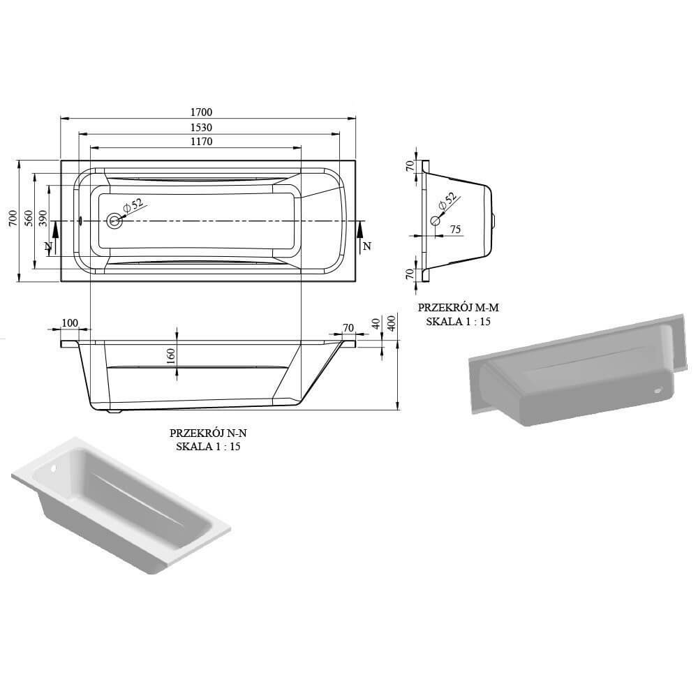 Ванна акриловая Bonito Home Aralia 1700х700 мм, прямоугольная, белая - практичное решение для ванной комнаты, где важны удобство, аккуратный внешний вид и понятная геометрия. Прямоугольная форма хорошо подходит для пристенной установки, помогает рационально использовать пространство и легко сочетается с современной сантехникой и плиткой разных оттенков.