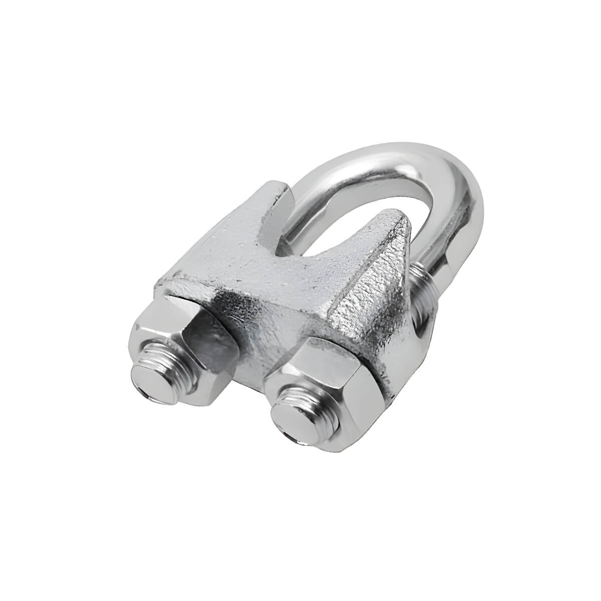 Зажим троса 8 мм, оцинкованный - предназначен для соединения концов стальных канатов и создания технологических петель. Широко применяется для подъема грузов на большую высоту, обеспечивая надежное и безопасное крепление.