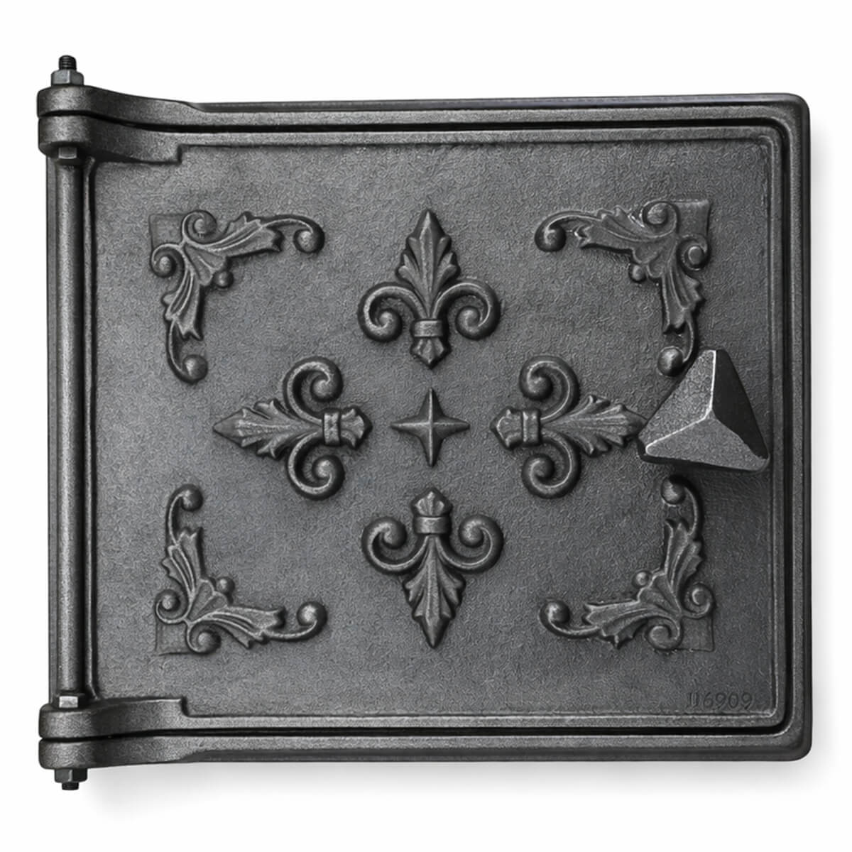 Ușă pentru sobă din fontă 265x225 mm, decorativă, plină (fără geam) — este o ușă din fontă destinată montajului pe sobe și construcții de tip șemineu, acolo unde este necesară închiderea completă a deschiderii, fără inserție din sticlă.