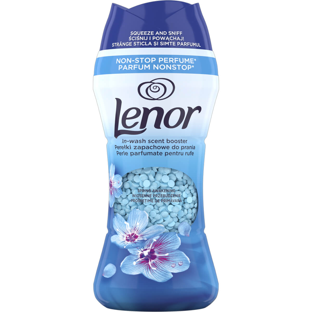 Granule parfumate pentru spălat rufe Lenor Spring Awakening 270 g, până la 12 săptămâni de prospețime — o modalitate practică de a oferi hainelor un parfum intens și de lungă durată. Perlele se activează în timpul spălării și impregnează treptat țesătura cu o aromă delicată, care rămâne chiar și după depozitare îndelungată.