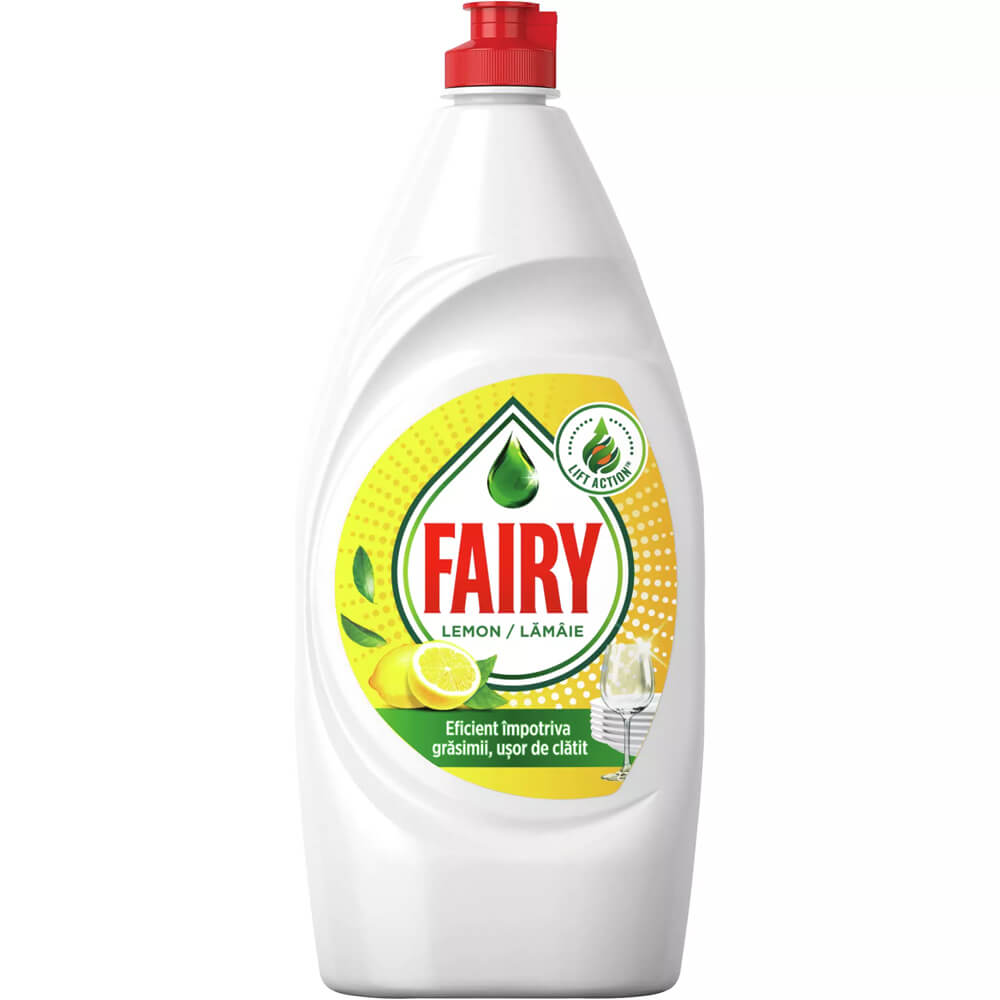 Fairy cu aromă de lămâie este destinat spălării manuale a vaselor și este eficient împotriva tuturor tipurilor de murdărie, chiar și în apă rece. Îndepărtează rapid grăsimea uscată și elimină cu ușurință cele mai dificile murdării de pe orice suprafață. Parfumul proaspăt de lămâie face spălatul vaselor mai plăcut.