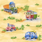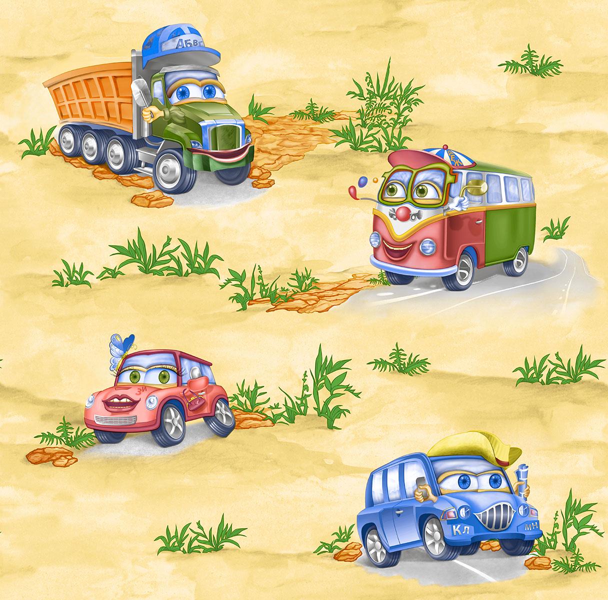 Tapete pe bază de hârtie Continent Mașini bej 0,53x10,05 m (Art. 41601) — tapet deschis la culoare, pe suport de hârtie, cu imprimeu de mașinuțe stilizate pe un fundal bej delicat. Modelul adaugă un „fir narativ” încăperii fără a încărca vizual spațiul: fundalul rămâne calm, iar mașinuțele funcționează ca un accent decorativ discret.