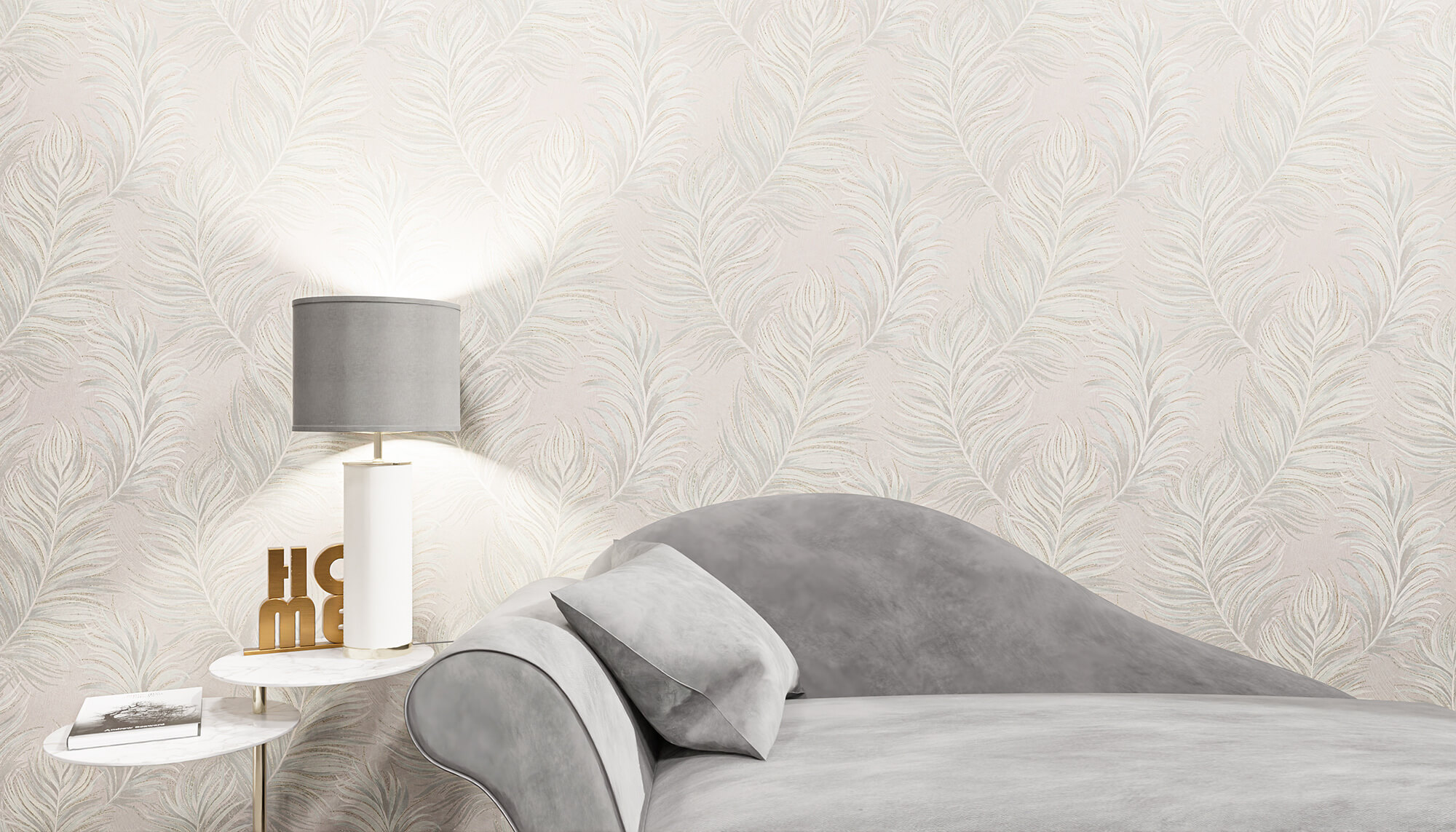 Modelul în relief, cu pene delicate, oferă pereților profunzime și joc de lumină, creând o atmosferă de confort și liniște. Datorită paletei cromatice blânde — de la tonuri bej deschis și crem până la nuanțe gri și aurii — tapetul se integrează ușor în orice stil de interior, de la clasic la minimalism modern.