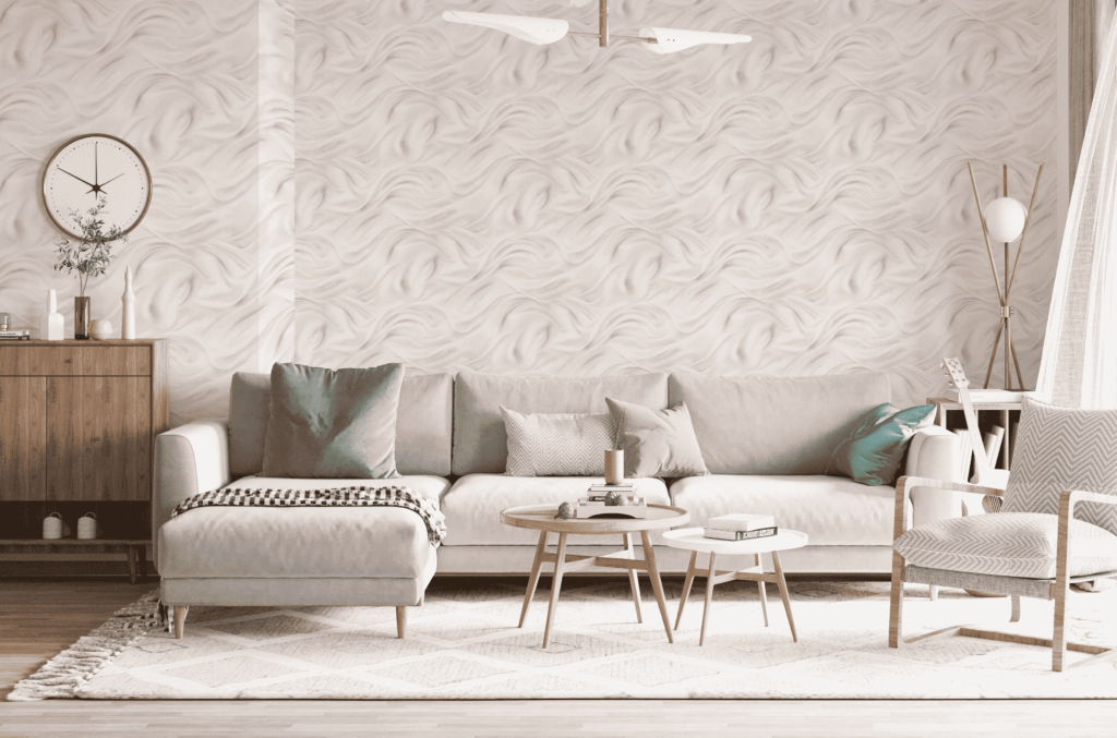 Stratul superior este realizat din vinil expandat, care oferă o textură vizibilă, dar discretă, și face suprafața mai practică în utilizarea zilnică. Suportul este din flizelină, ceea ce facilitează montajul: fâșiile se aliniază mai ușor, iar cu o pregătire corectă a pereților, rezultatul final este curat și uniform.