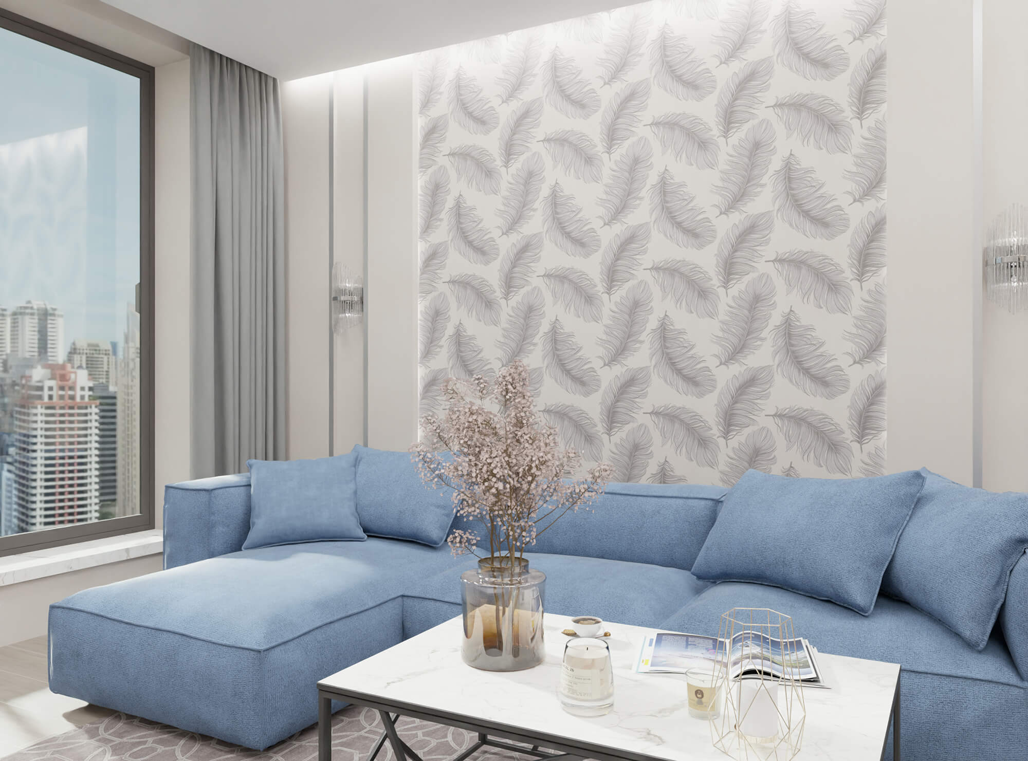 Tapet vinilic pe bază de flizelină BELVINIL Peria Fon 1,06x10 m — o combinație armonioasă de eleganță, finețe și design modern. Imprimeul stilat sub formă de pene delicate oferă interiorului un aer lejer și rafinat, creând o atmosferă primitoare și relaxantă.