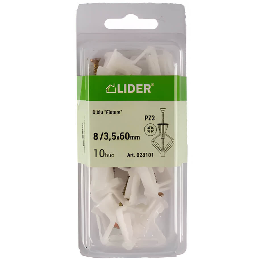 Montare: Se va executa un orificiu de dimensiunile indicate de producător şi se va curăța. Se va introduce diblul în orificiu, strângându-i-se, în prealabil, părţile flexibile şi se va înfileta în diblu şurubul de dimensiunea potrivită.