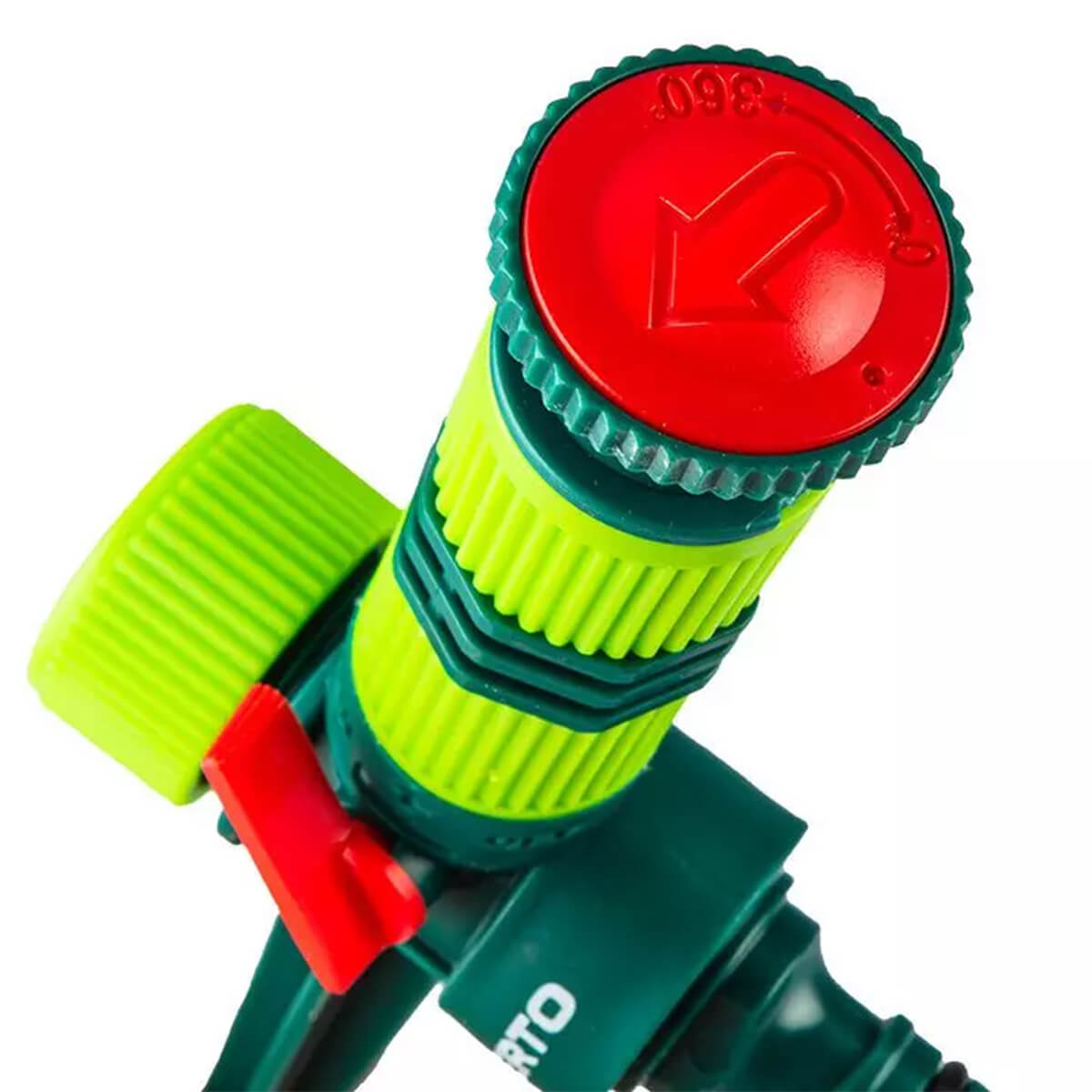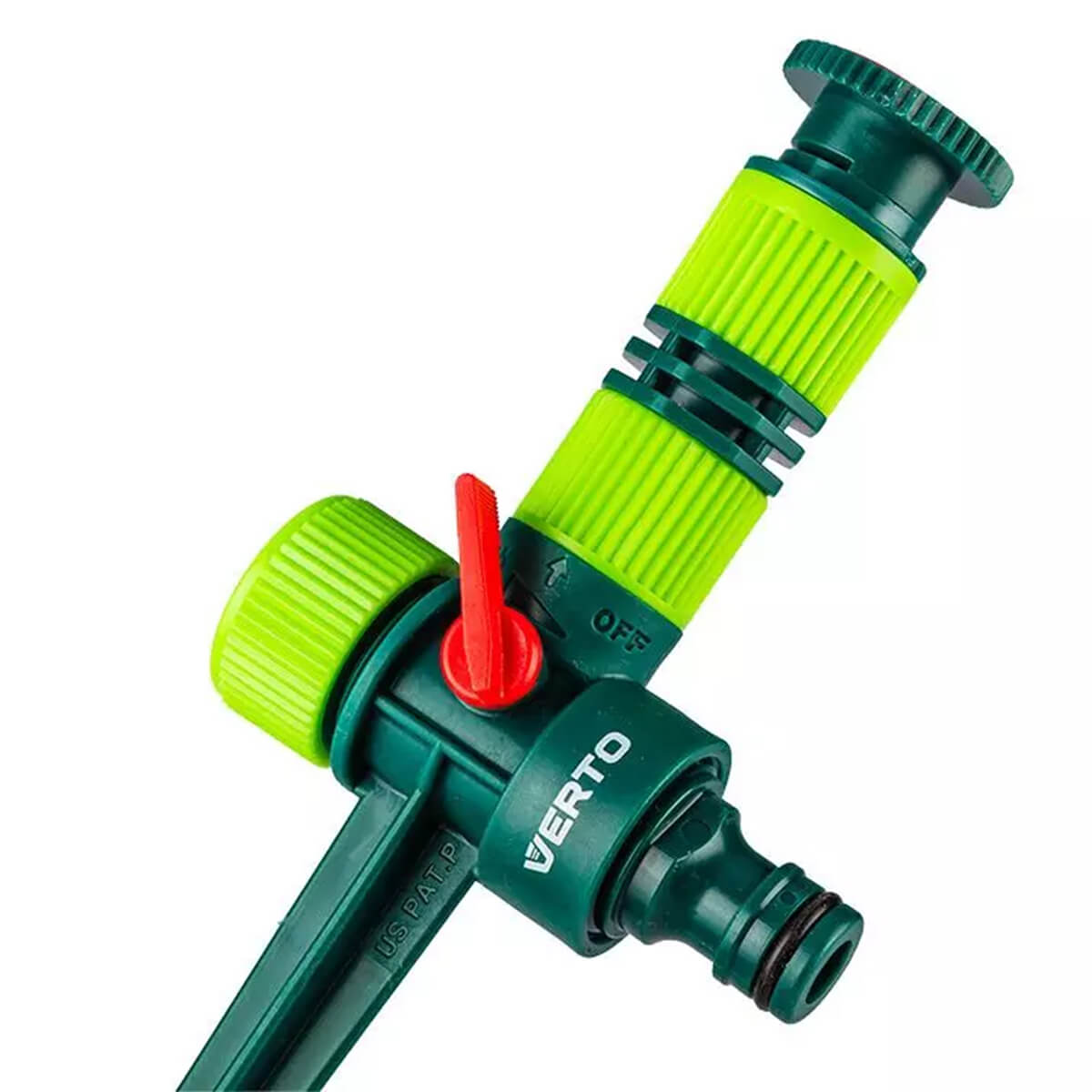 Aspersor de grădină VERTO reglabil 0-360 grade, suprafață de udare până la 78 m2 15G785 - este conceput pentru udarea gazonului, straturilor de flori, rondurilor și suprafețelor mici din grădină. Modelul se fixează în sol cu ajutorul bazei ascuțite și contribuie la distribuirea uniformă a apei în zona dorită.