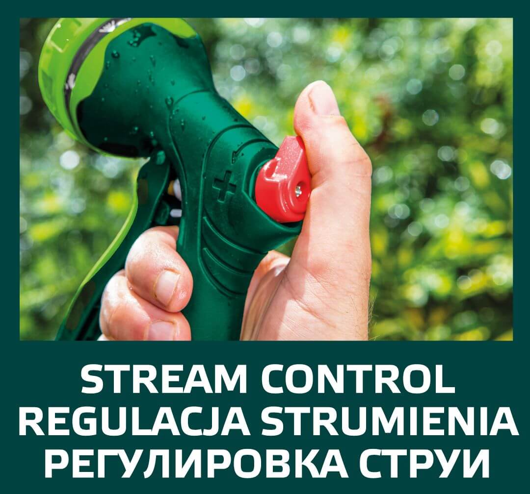 Mânerul ergonomic cu strat cauciucat stă confortabil în mână, iar prezența unui blocator facilitează utilizarea îndelungată fără oboseală. Datorită conectorilor universali, setul este compatibil cu majoritatea furtunurilor cu diametrul de 1/2″ și 3/4″.