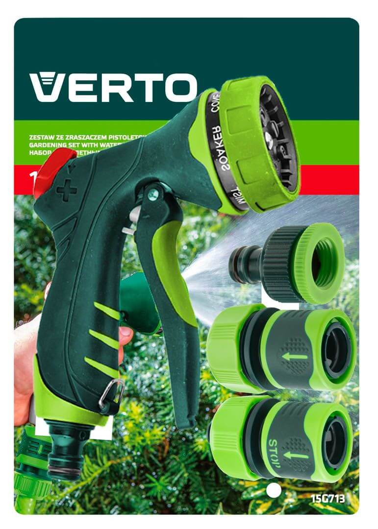 Set udare VERTO 15G713 — o soluție practică și comodă pentru îngrijirea grădinii, a peluzei sau a culturilor din curte. Setul include un pistol de pulverizare cu șapte moduri de stropire, permițând adaptarea ușoară la diverse sarcini — de la udarea delicată a florilor până la un jet puternic pentru curățarea aleilor.