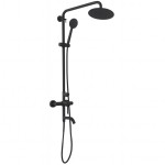 Elementul central al construcției este capul de duș superior de 200x200 mm, care asigură un jet uniform de apă pentru o experiență confortabilă. Setul include, de asemenea, o pară de duș manuală cu furtun flexibil și baterie cu pipă pivotantă, ceea ce face sistemul versatil atât pentru duș, cât și pentru umplerea căzii.