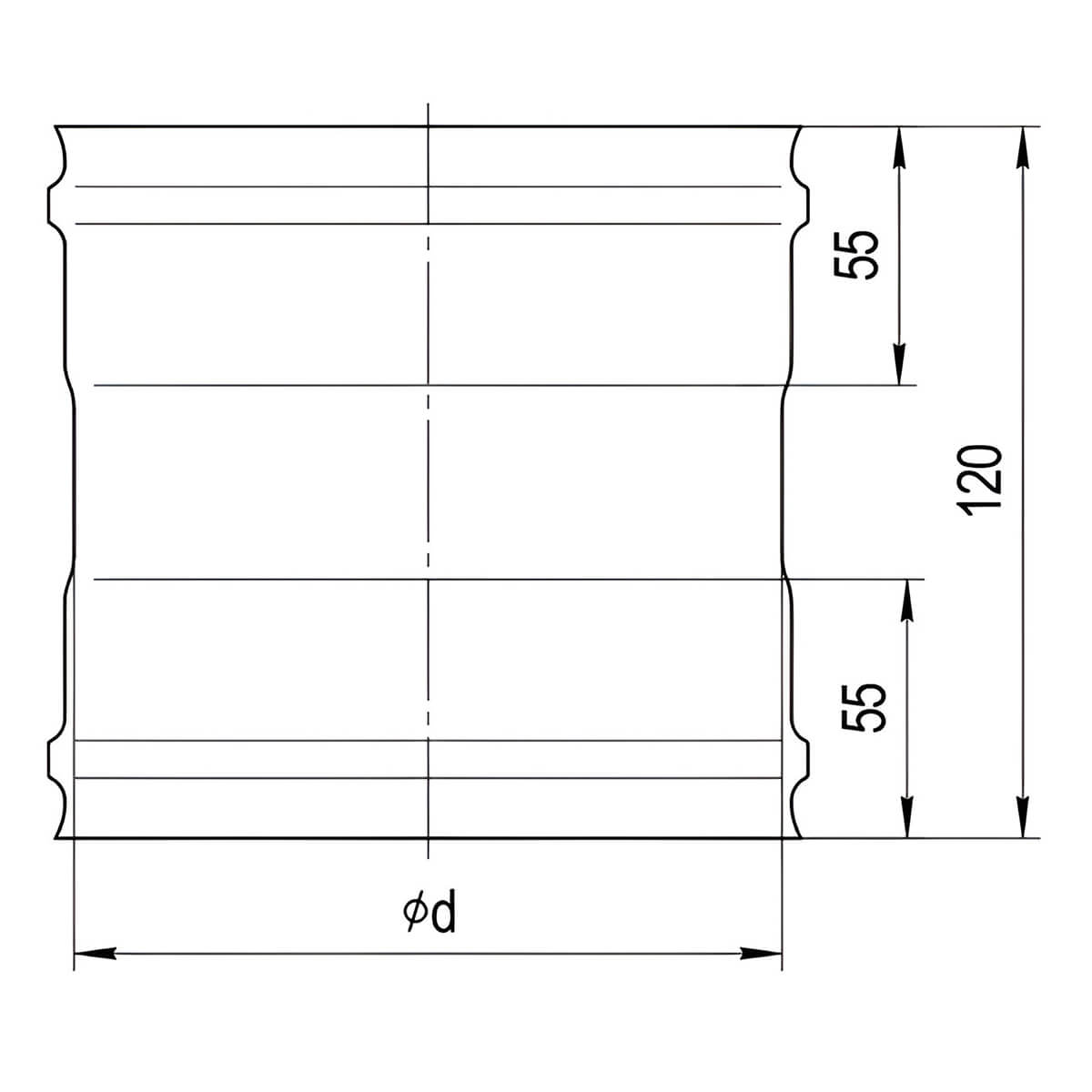 Adaptor pentru coș de fum Ferrum d.150 mm, din oțel inoxidabil AISI 430, 0,5 mm, mamă-mamă, F0109