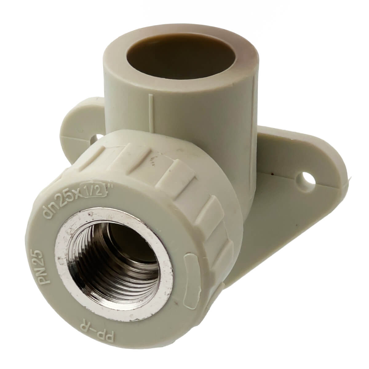Cot de perete combinat din polipropilenă 25 mm x 1/2" filet intern PN25 gri