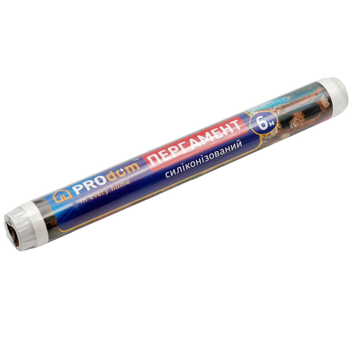 Hârtie pentru copt siliconizată ProDom 6 m x 29 cm — un ajutor practic și sigur în bucătărie. Datorită stratului special de silicon, previne lipirea aluatului și a altor produse, asigurând o coacere uniformă fără a fi necesar ulei sau grăsime.