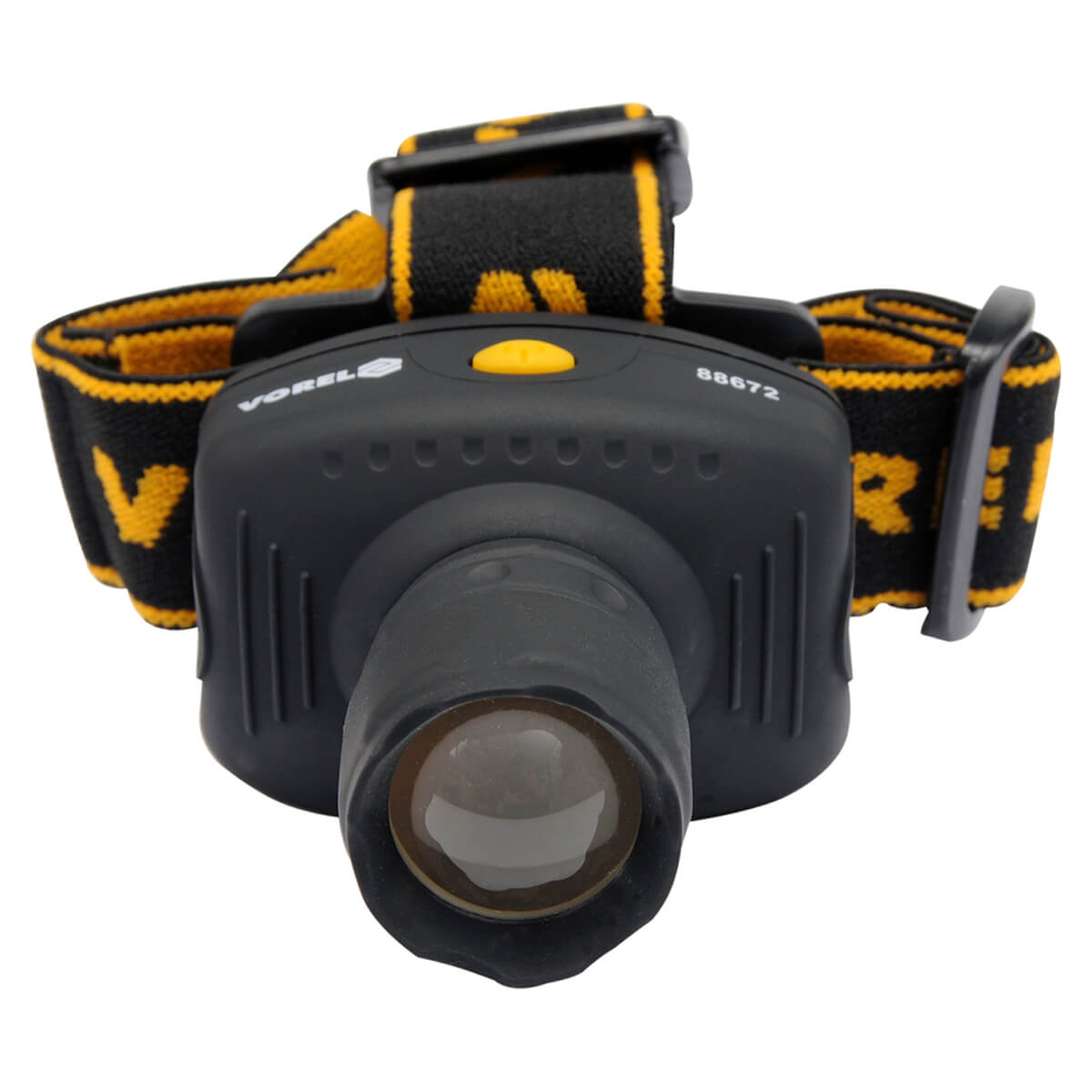 Lanternă frontală VOREL LED 3 W (Art. 88672) — sursă compactă de iluminare pentru situațiile în care aveți nevoie de mâini libere: lucrări de reparație și montaj, activități în garaj, la casă, în subsol, plimbări seara sau sarcini casnice uzuale.