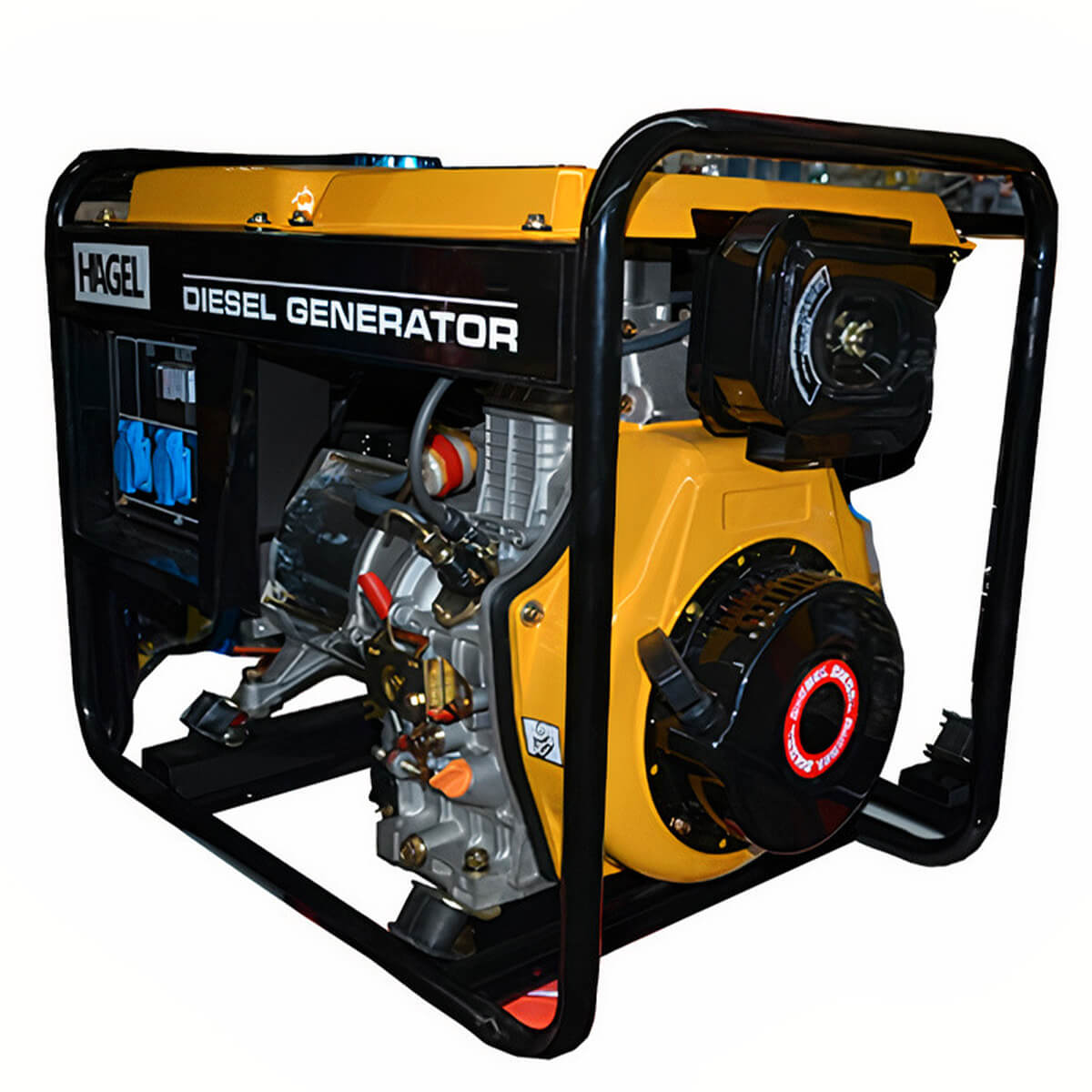 Generator al brand-ului HAGEL de model 3600 CL, cu tensiunea la ieșire AC 220V, puterea 3 kW, nr. poli 1P, frecvența 50Hz și carburant de tip motorină.