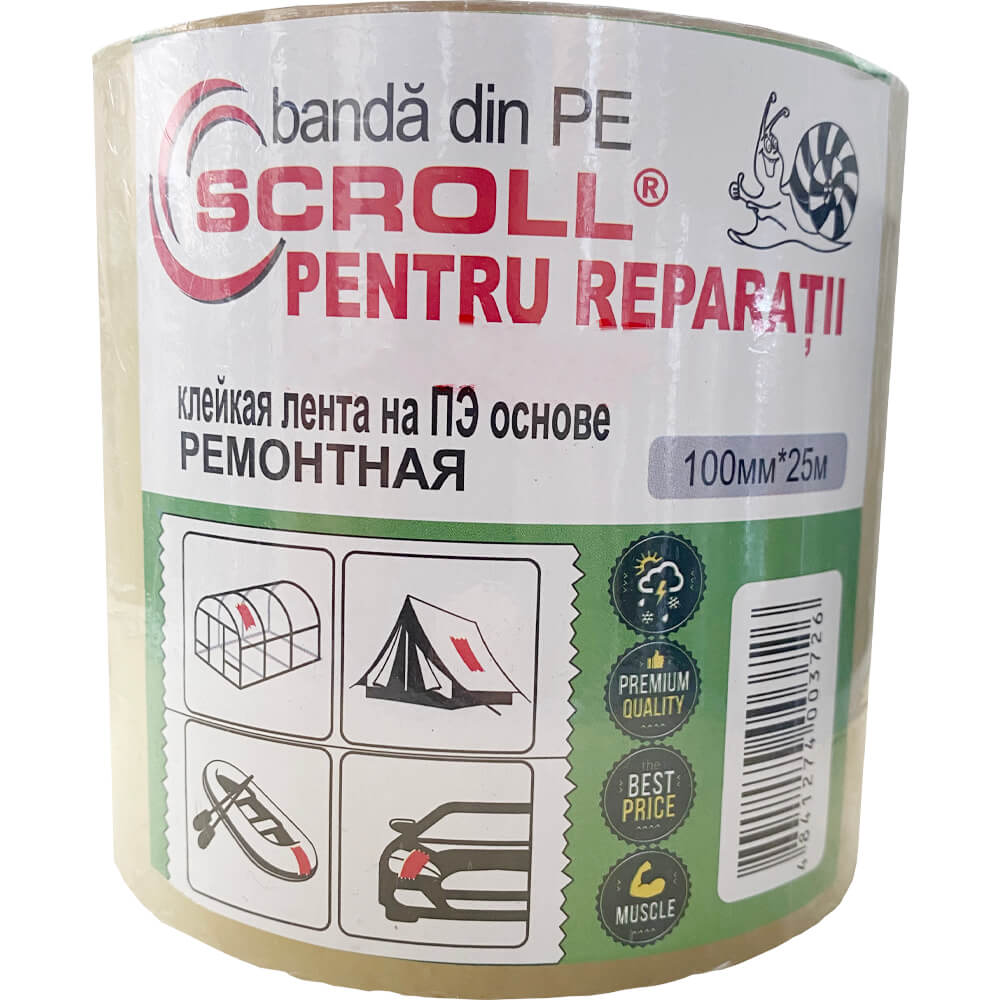 Bandă pentru reparații SCROLL din PE 25 m x 100 mm. Pentru informații suplimentare, vă rugăm să vă adresați la consultantul magazinului VERITAN.