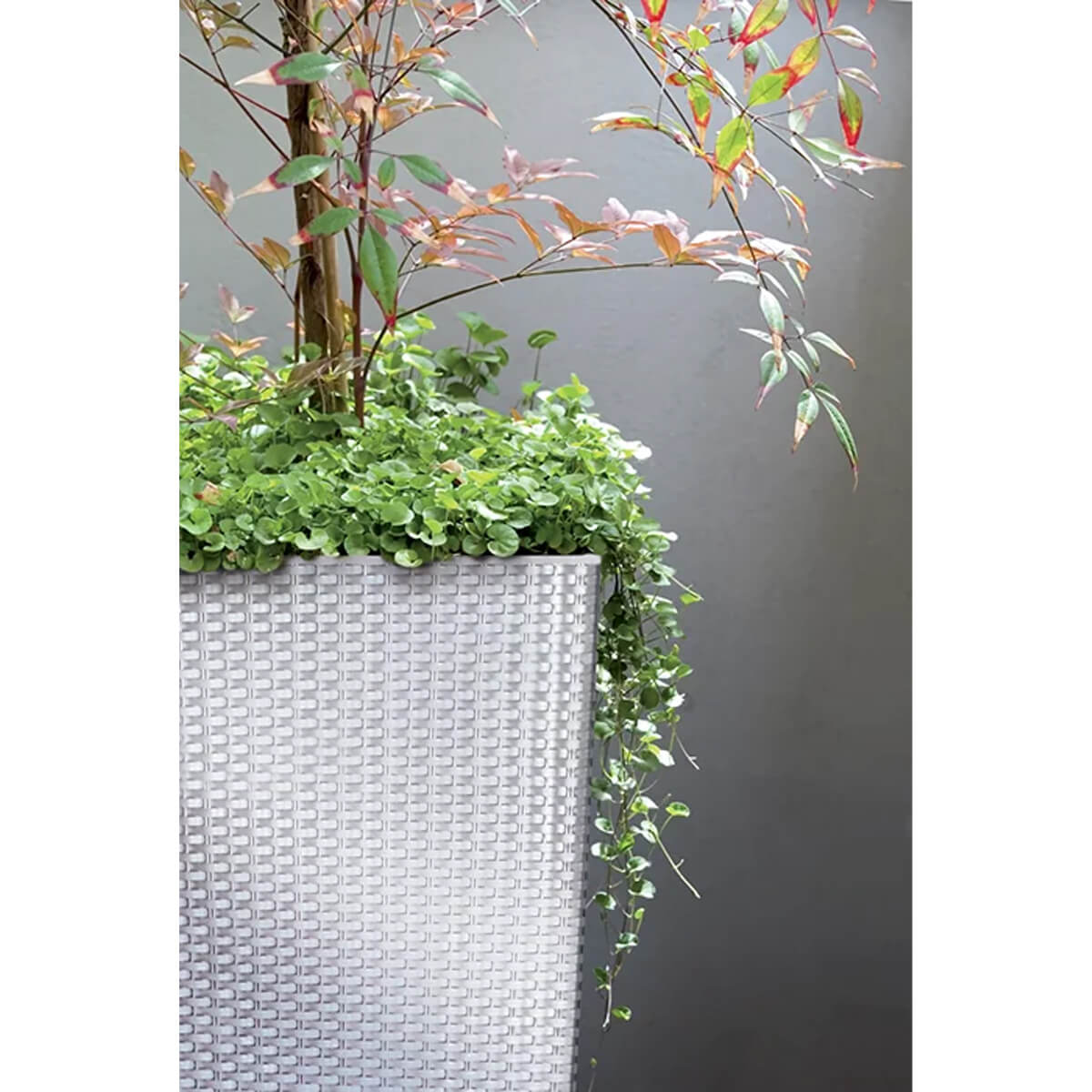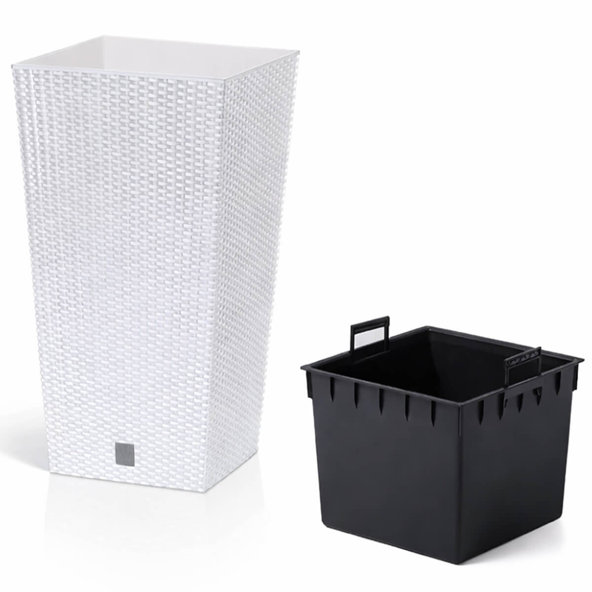 Forma sa pătrată și înaltă ajută la organizarea ordonată a spațiului, iar ghiveciul interior facilitează plantarea și întreținerea plantelor.