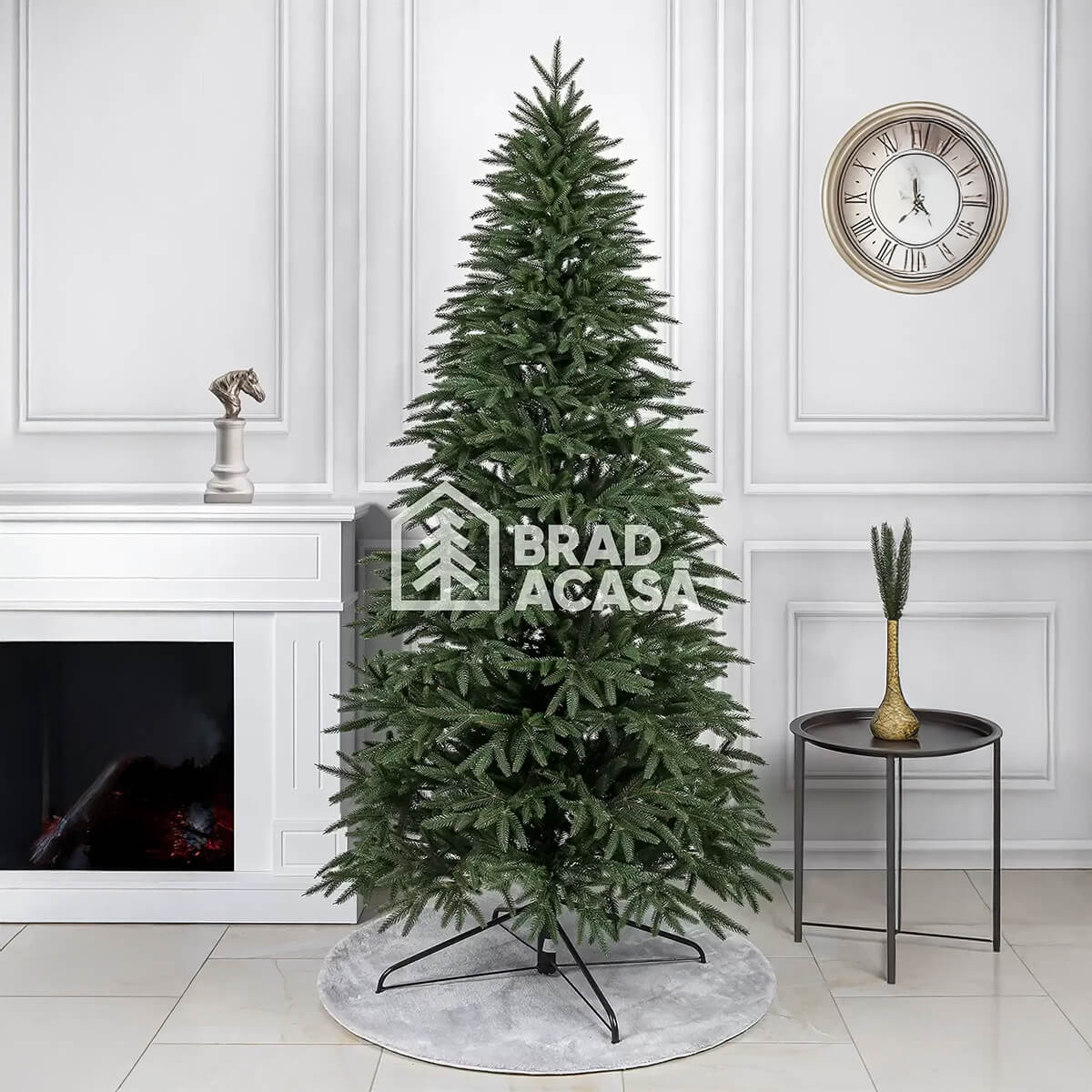 Bradul este stabil datorită suportului metalic și este destinat utilizării repetate: îl scoți din cutie, îl asamblezi, aranjezi ramurile și este gata de utilizare. Acele din PE sunt practice în folosirea zilnică: nu se sfărâmă, nu lasă urme verzi pe podea și nu necesită întreținere specială.
