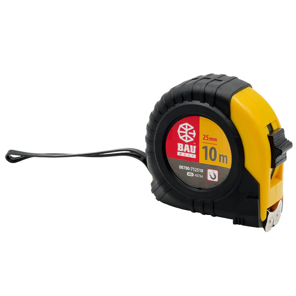 Ruletă cu carcasă cauciucată, fixator și magnet BAU WELT 10 m x 25 mm (Art. 00700-712510) – este destinată măsurătorilor liniare precise în lucrări de construcții, montaj și reparații. Potrivită pentru utilizare atât în interior, cât și în exterior.