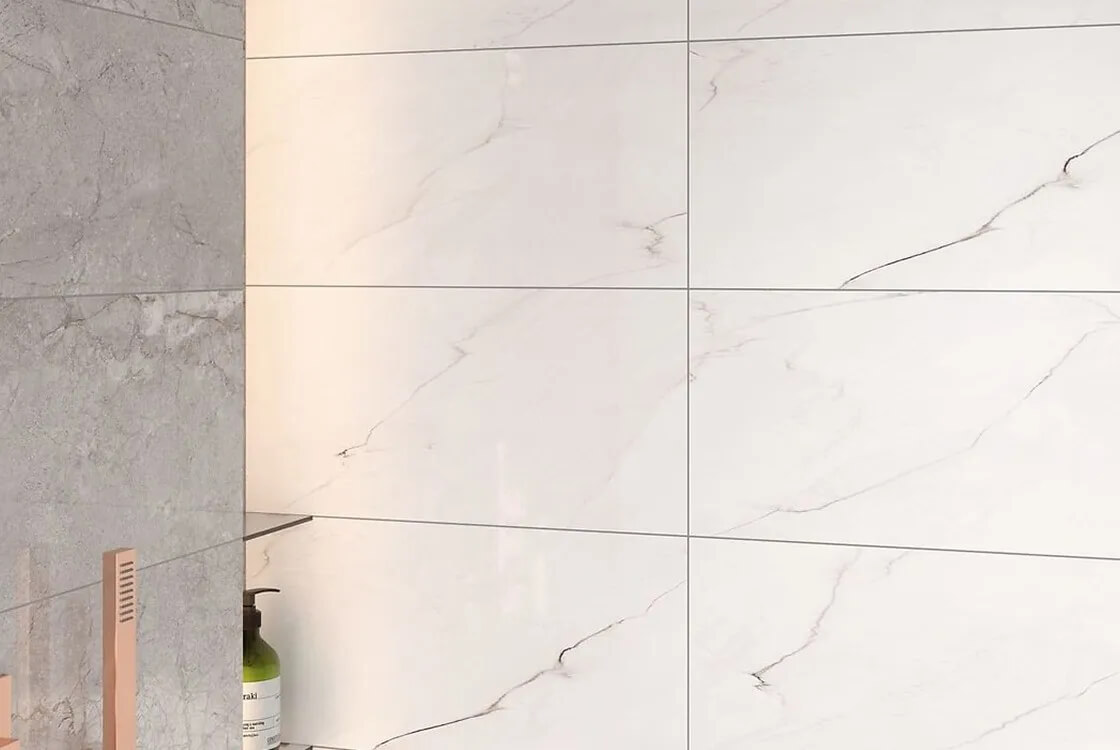 Modelul inspirat de marmura albă are un aspect echilibrat și modern, de aceea această placă ceramică se combină ușor cu lemnul, betonul, obiectele sanitare cromate, accentele negre și mobilierul în tonuri neutre. Formatul 297x600 mm este comod pentru montaj pe perete: suprafața arată mai uniform, iar numărul rosturilor rămâne moderat, ceea ce este deosebit de important pentru un design calm și ordonat.