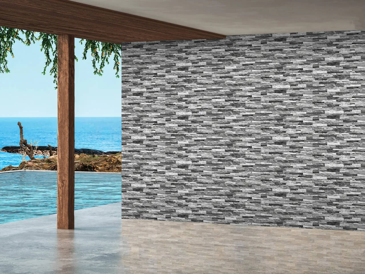 Modelul cu aspect de piatră permite realizarea rapidă a unui perete de accent sau a unei zone complete: duș, backsplash de bucătărie, nișă TV, hol sau coridor. Formatul 300×600 mm alungește vizual spațiul și accelerează montajul — mai puține rosturi și un aspect general mai curat.
