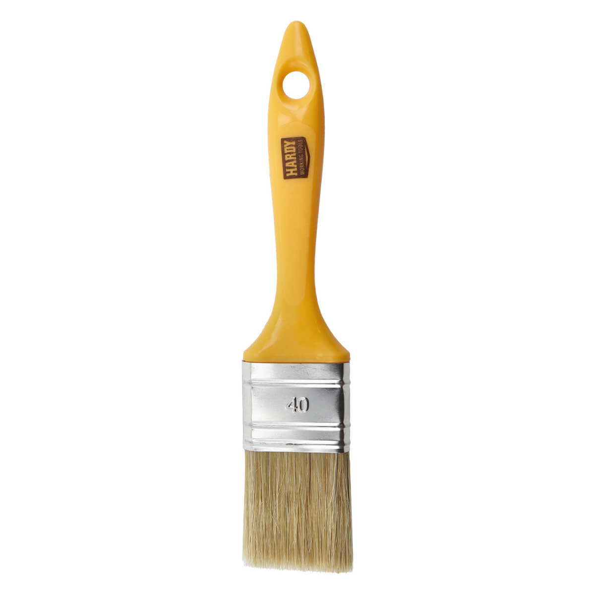 Pensulă plată Hardy 40 mm, peri amestecați, cu mâner din plastic, pentru vopsele acrilice și pe bază de apă — instrument versatil pentru aplicarea precisă a vopselelor acrilice și pe bază de apă pe diverse tipuri de suprafețe. Forma plată permite distribuirea uniformă a materialului, trasarea liniilor drepte și acoperirea colțurilor și muchiilor fără urme vizibile sau zone neacoperite.