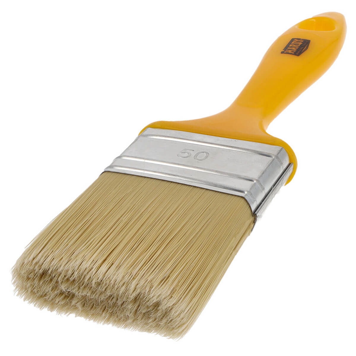 Pensulă plată Hardy 50 mm, peri amestecați, cu mâner din plastic, pentru vopsele acrilice și pe bază de apă — instrument versatil pentru aplicarea precisă a vopselelor acrilice și pe bază de apă pe diverse tipuri de suprafețe. Forma plată permite distribuirea uniformă a materialului, trasarea liniilor drepte și acoperirea colțurilor și muchiilor fără urme vizibile sau zone neacoperite.
