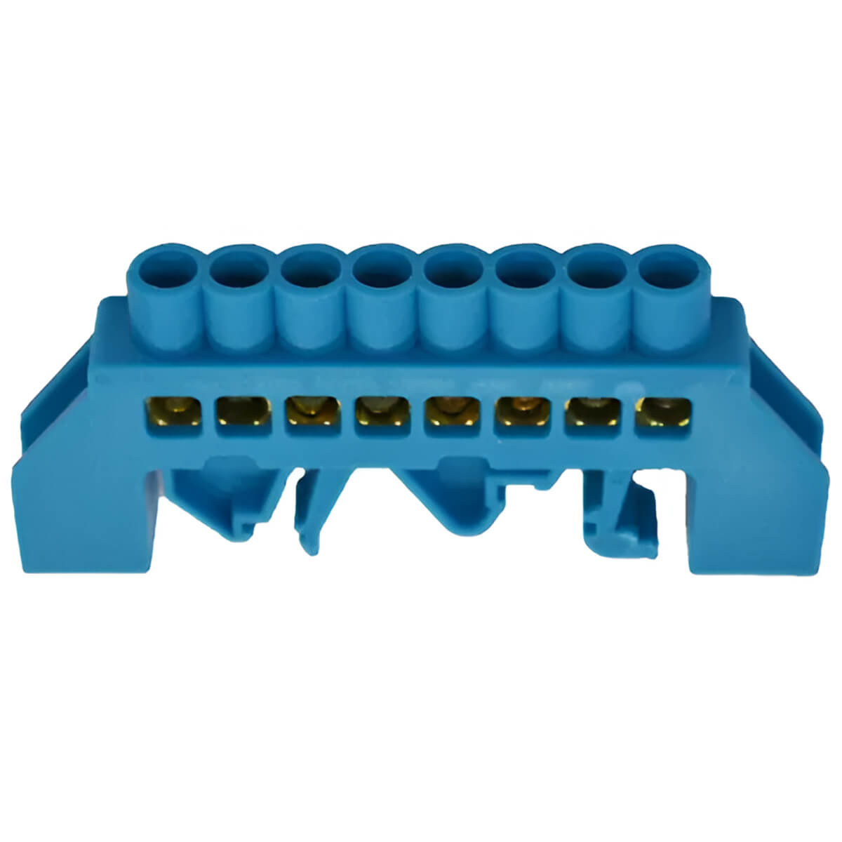 Șină zero izolată KASAN pe DIN-35, 6x9 mm, 8P, albastră este concepută pentru conectarea sigură și organizată a conductorilor de nul (N) și de protecție (PE) în interiorul tabloului electric. Se montează pe șină DIN-35, contribuind la structurarea cablajului și la facilitarea intervențiilor ulterioare asupra echipamentului de distribuție.