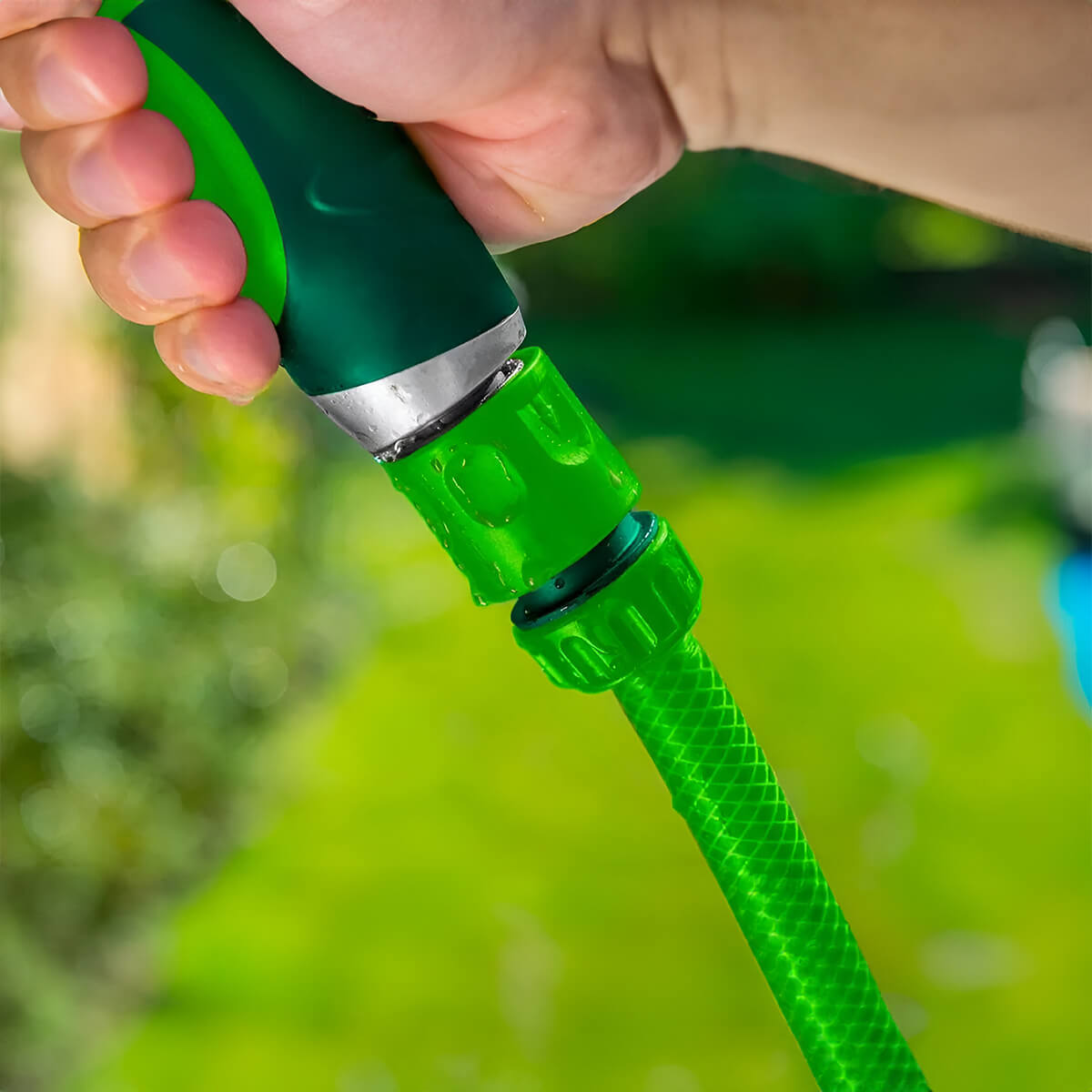 Conectorul VERTO 15G721 este utilizat pentru conectarea unui furtun cu diametrul de 1/2" la un accesoriu de udare. Sistemul aquastop permite schimbarea accesoriului pe furtun fără a închide apa de la robinet. Carcasa conectorului este fabricată din plastic de înaltă rezistență, asigurând durabilitate și fiabilitate în utilizare.