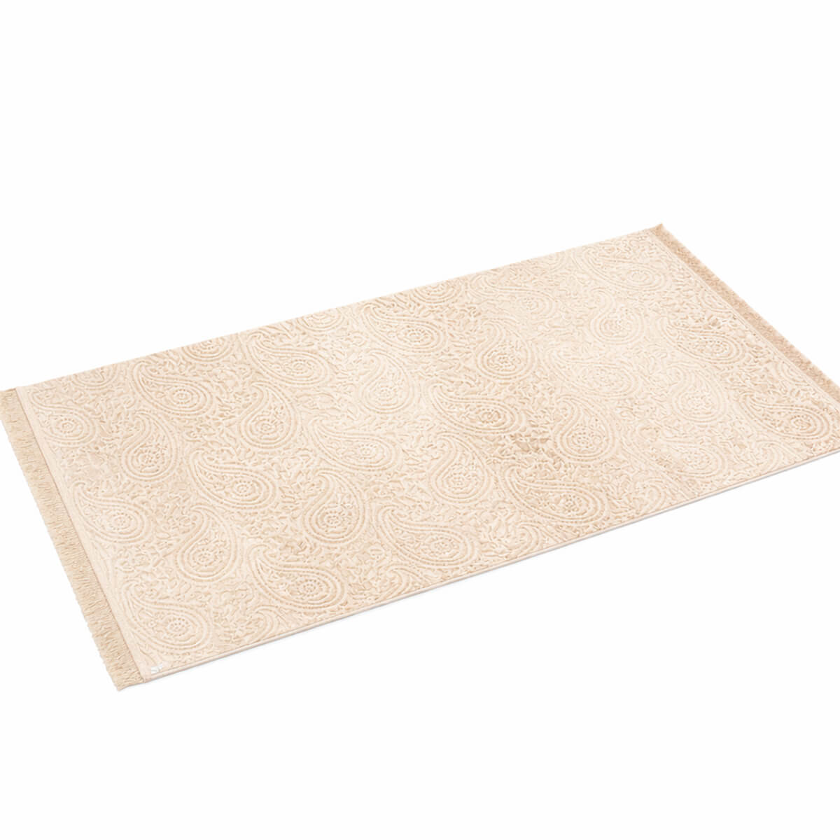 Covorul Nurteks Gold — un covor decorativ cu ornament oriental expresiv și franjuri, care adaugă interiorului textură și un aspect „bine definit”. Designul este universal: arată bine atât în amenajări clasice, cât și în spații moderne.
