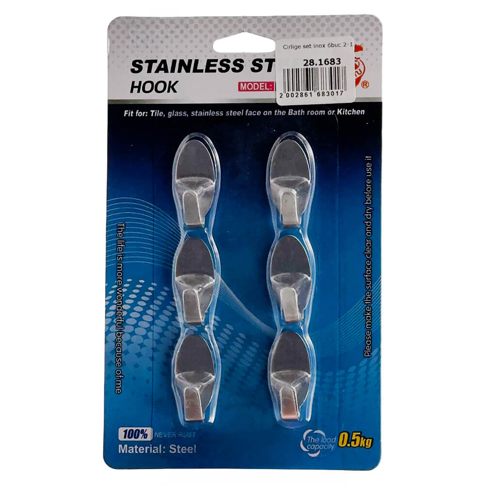 Fiecare cârlig se fixează pe o suprafață netedă cu ajutorul bazei adezive. Este convenabil pentru agățarea unui prosop, burete de baie, mănușă de bucătărie, accesoriu ușor, chei sau alte obiecte mici. Inoxul este rezistent la umiditate și este potrivit pentru încăperi unde apar frecvent aburi și variații de temperatură.