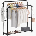 Suport dublu pentru haine pe roți AT3117-1/A — o soluție practică și stabilă pentru organizarea hainelor acasă, în magazin sau la birou. Modelul este echipat cu două bare, permițând depozitarea unei cantități duble de articole vestimentare fără a le șifona.