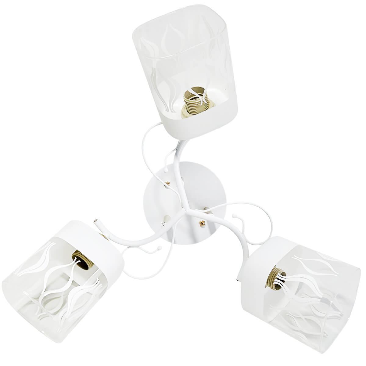 Lustră pentru tavan O’LESSYA (6755A/3) albă — o soluție rafinată pentru crearea unui interior confortabil. Cele trei abajururi din sticlă cu un model delicat asigură o iluminare moale și plăcută, adăugând încăperii o atmosferă de confort. Cadrul metalic alb face lustra versatilă și potrivită pentru diverse stiluri de interior, cum ar fi modern, clasic sau scandinav.