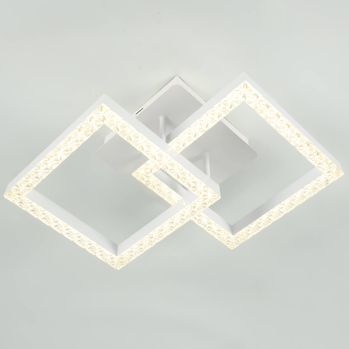 • Design: două contururi pătrate — aspect modern și geometrie curată pe tavan.