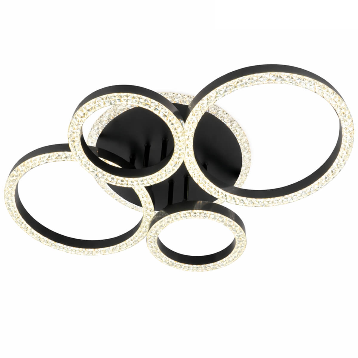 Lustră LED de tavan cu inele 2+2, neagră, 6115Y-2+2 BK — corp de iluminat pentru iluminarea principală a încăperii. Compoziția din patru inele luminoase oferă o lumină uniformă și intensă, având un aspect modern.